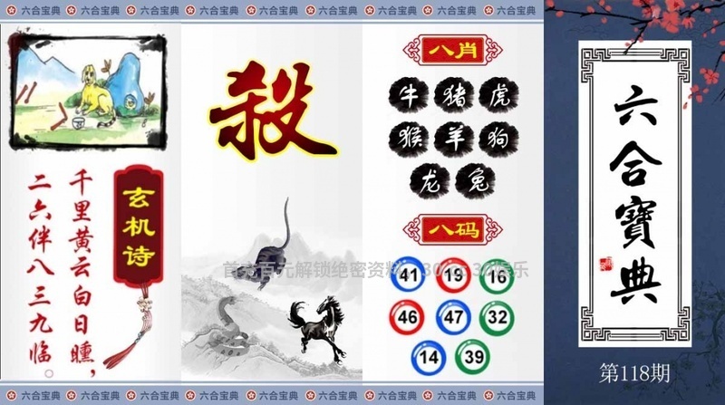 | 120期:九肖【虎龙兔猴牛鸡鼠猪蛇】开:牛41准 |